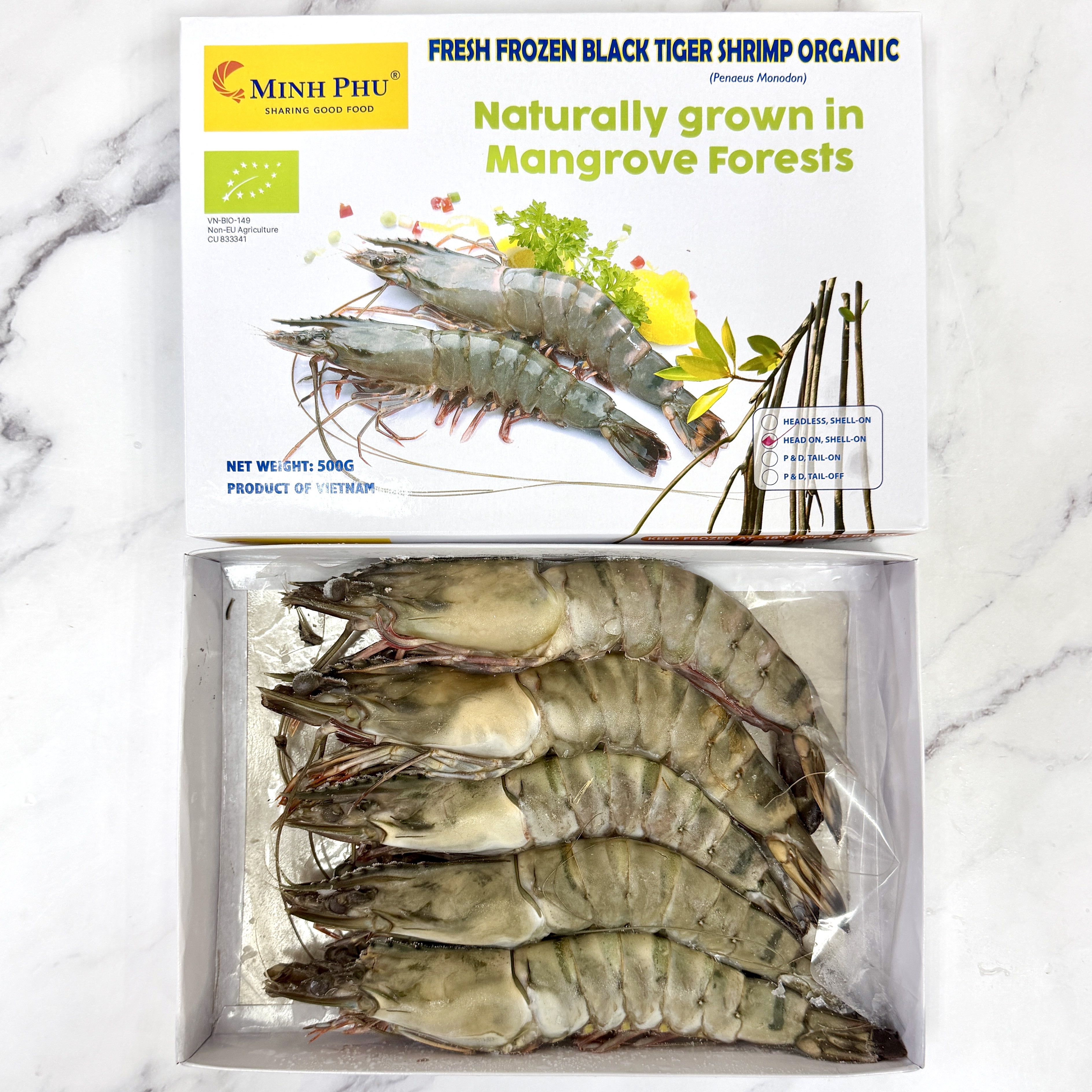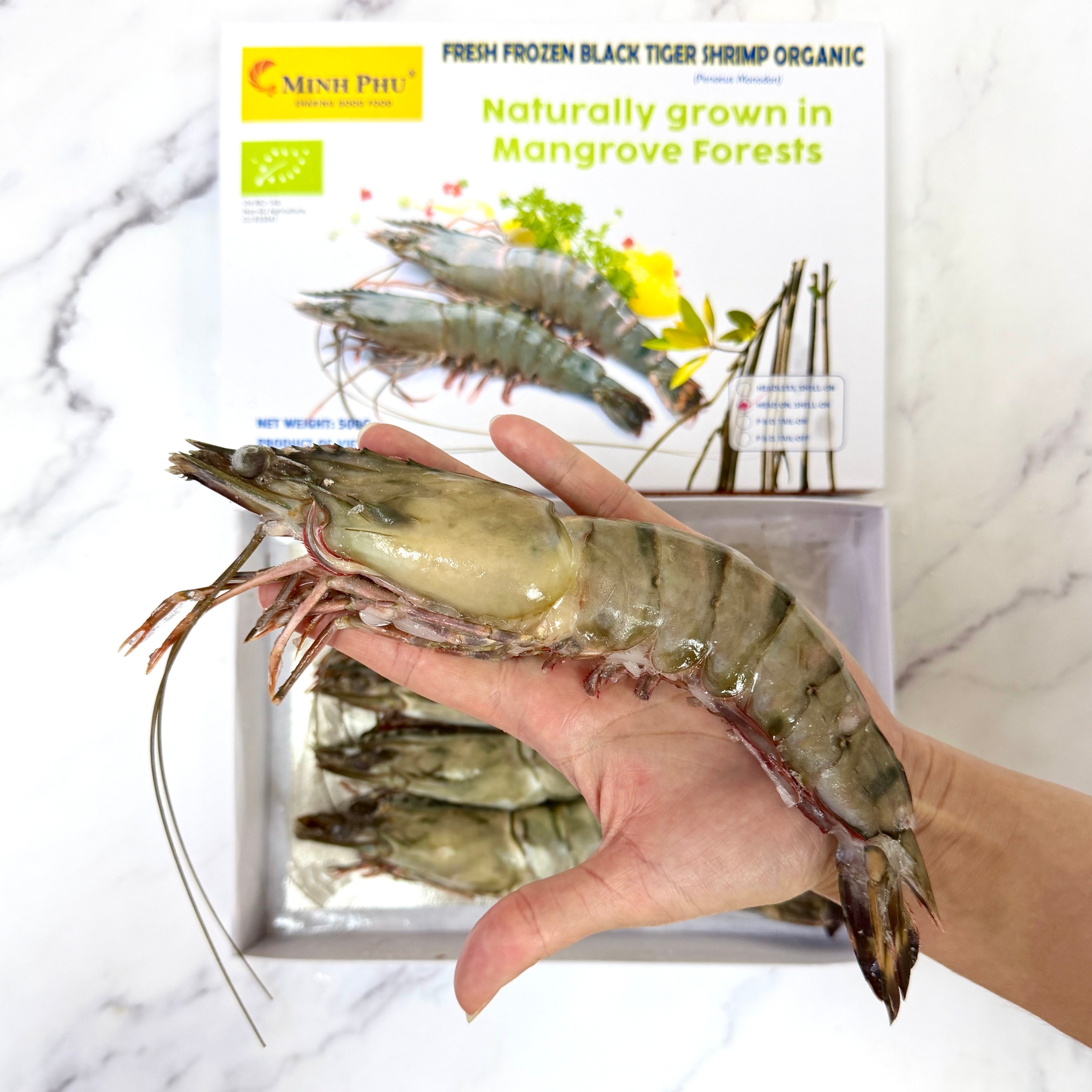 越南( 有機 )原隻大虎蝦 U5 (500g) 來自越南紅樹林保育水域(Mangrove Forest),符合生態可持續性,有機認證符合國際標準。 虎蝦天然放養比起養殖蝦更有營養成分,不使用人工飼料或化學添加物,讓蝦隻自然成長,品質更安心,口感爽口彈牙,啖啖鮮肉,滋味無窮。 5隻裝份量十足,每隻長度~18cm,肉質飽滿鮮甜啖啖肉,蝦味濃郁 原隻煎、煮、烤、焗、燒,保留原汁原味 食用限期😉😉 2027年7月19日